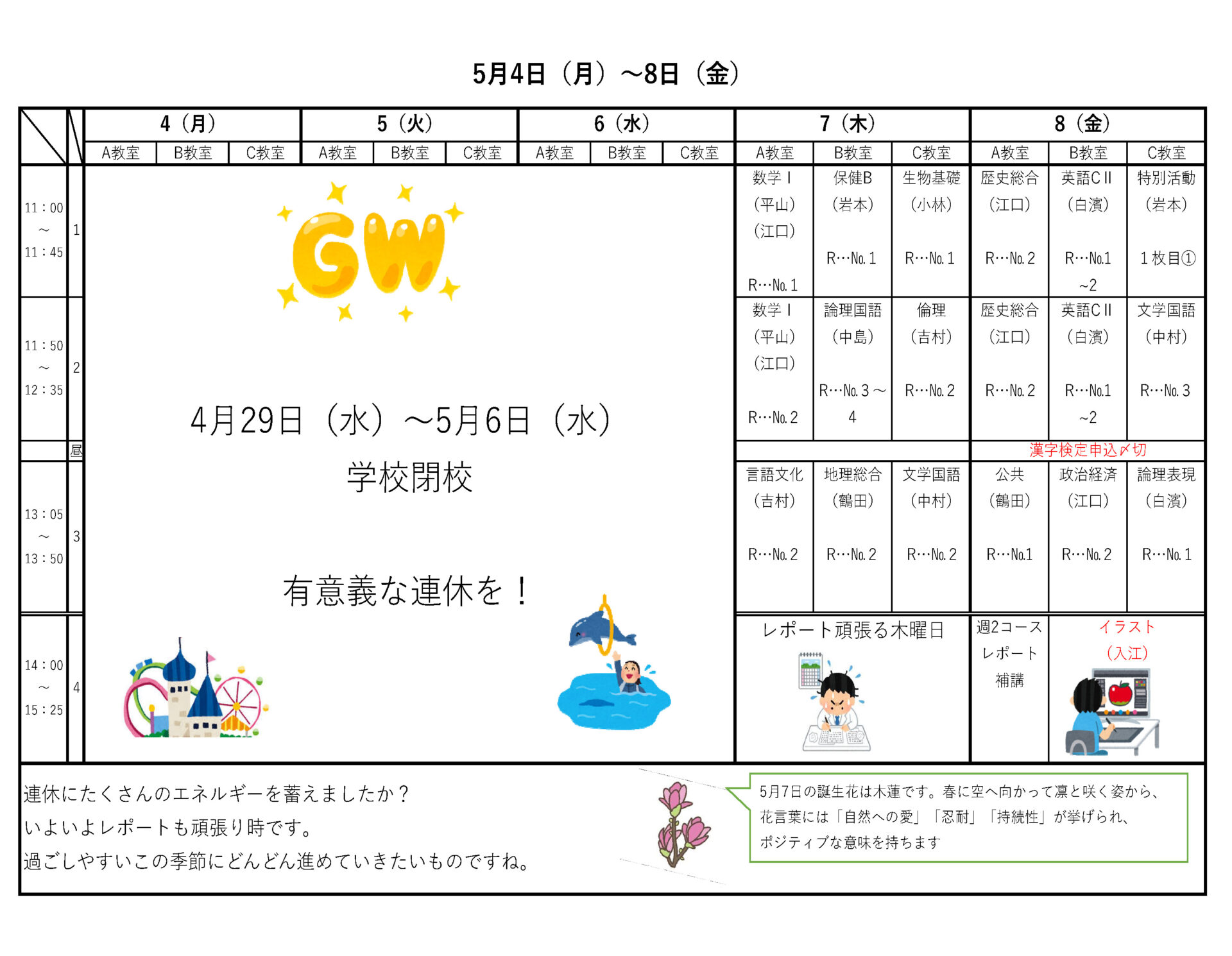 4月13日(月)~17日(金)スケジュール