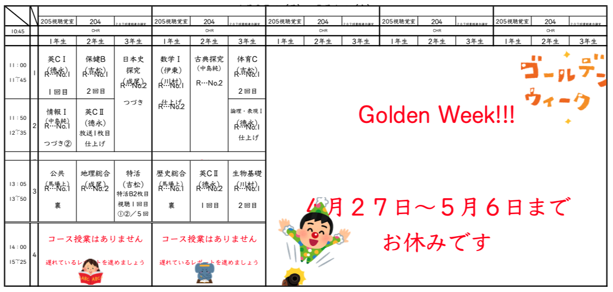 4月20日(月)~24日(金)スケジュール
