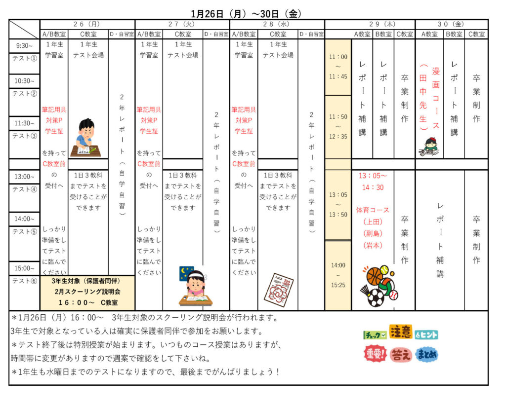 1月26日(月)~30日(金)スケジュール