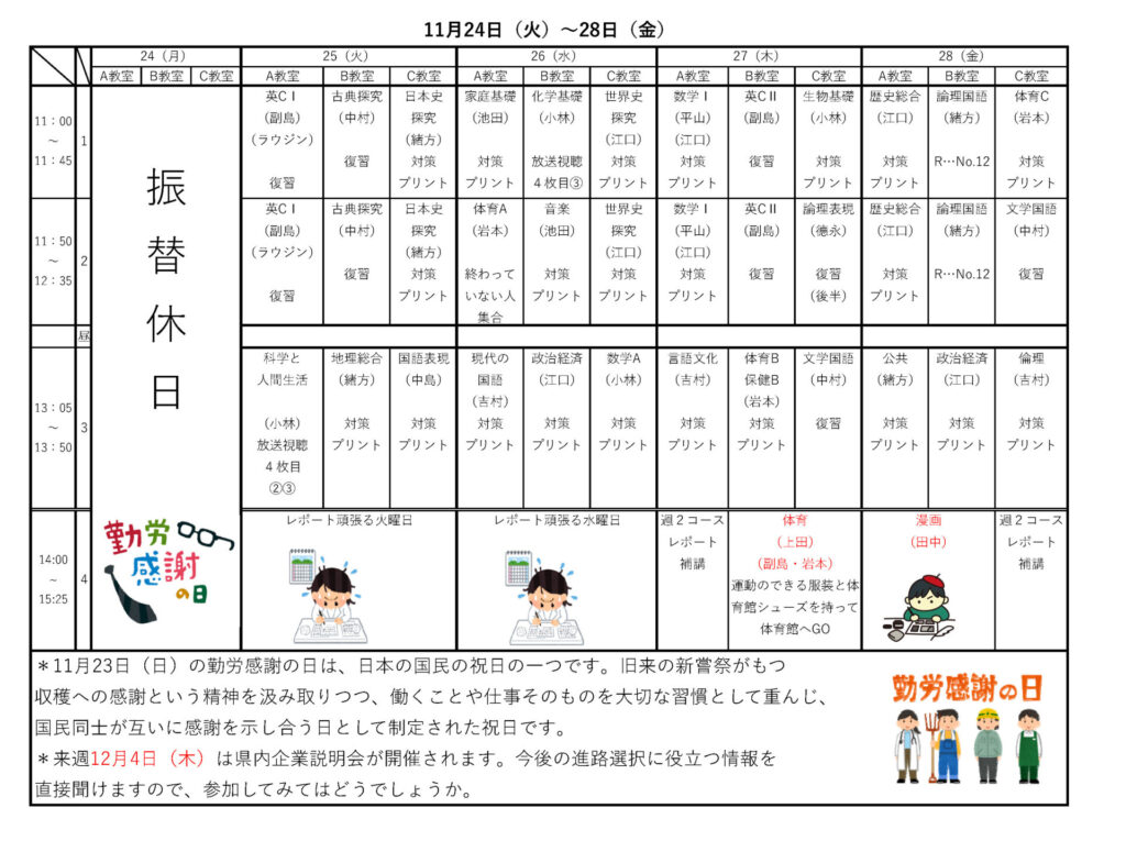 11月24日(月)~28日(金)スケジュール