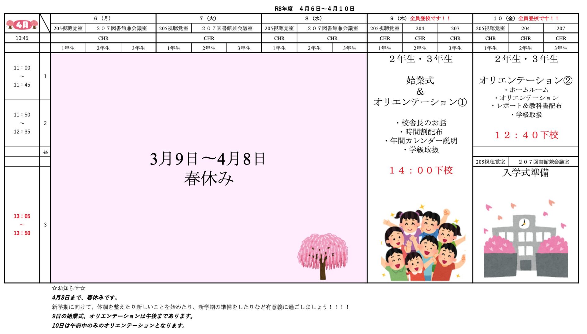 4月6日(月)〜4月10日(金)のスケジュール